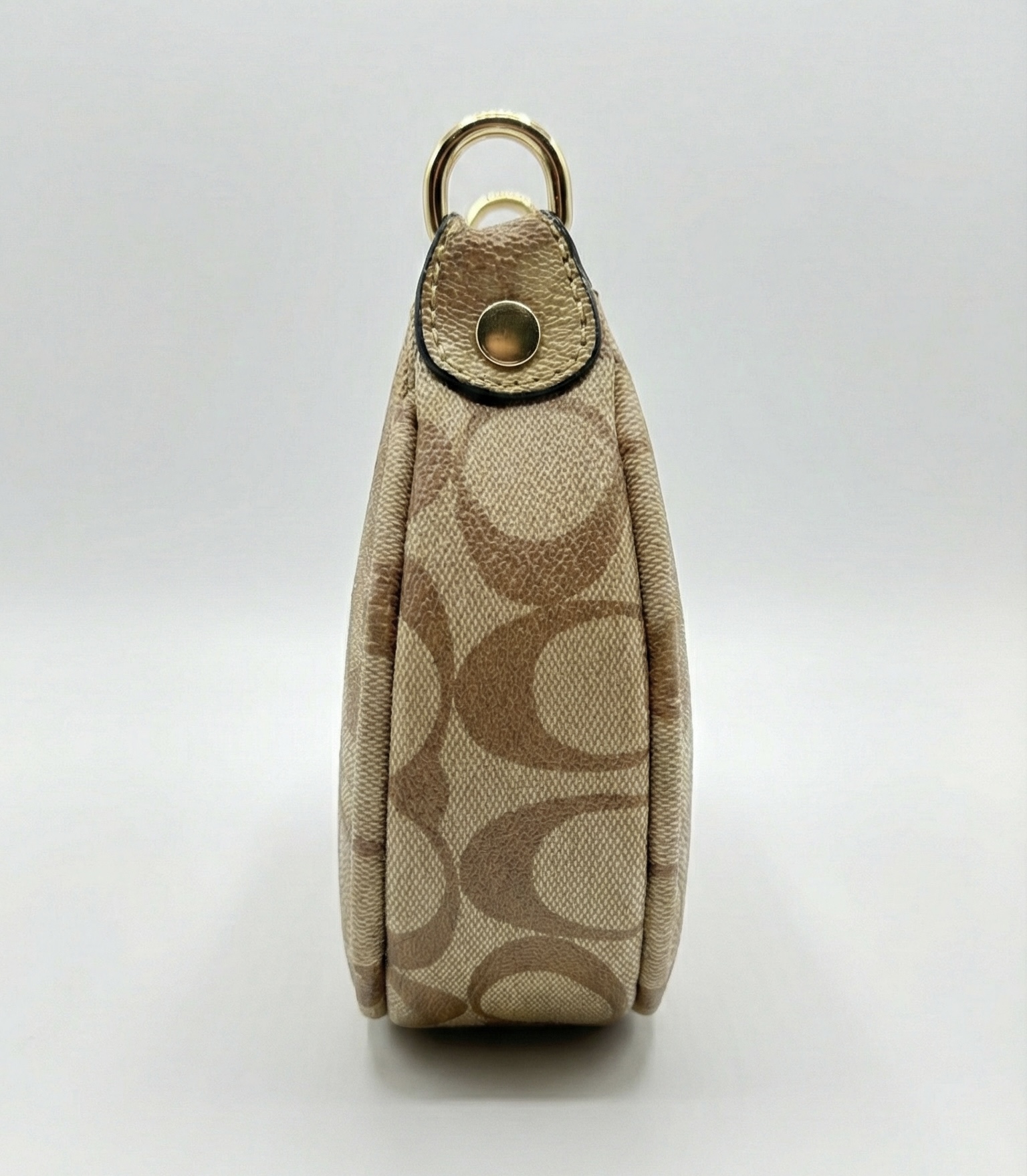 ظرافت در ابعاد کوچک. کیف مینی کوچ با فرم هلالی و طرح کلاسیک سیگنچر، اکسسوری بینظیری برای تکمیل استایلهای لوکس و مینیمال شماست.
