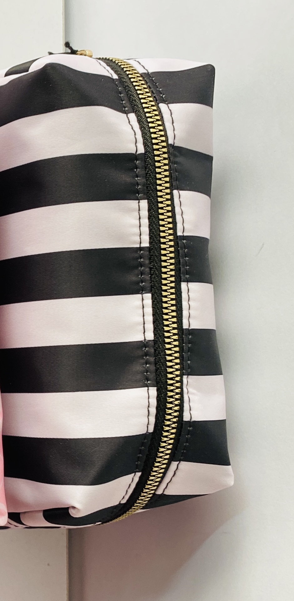 نحوه بسته شدن کیف: با زیپ فلزی و سرزیپ اصلی ویکتوریا سکرت به رنگ طلایی